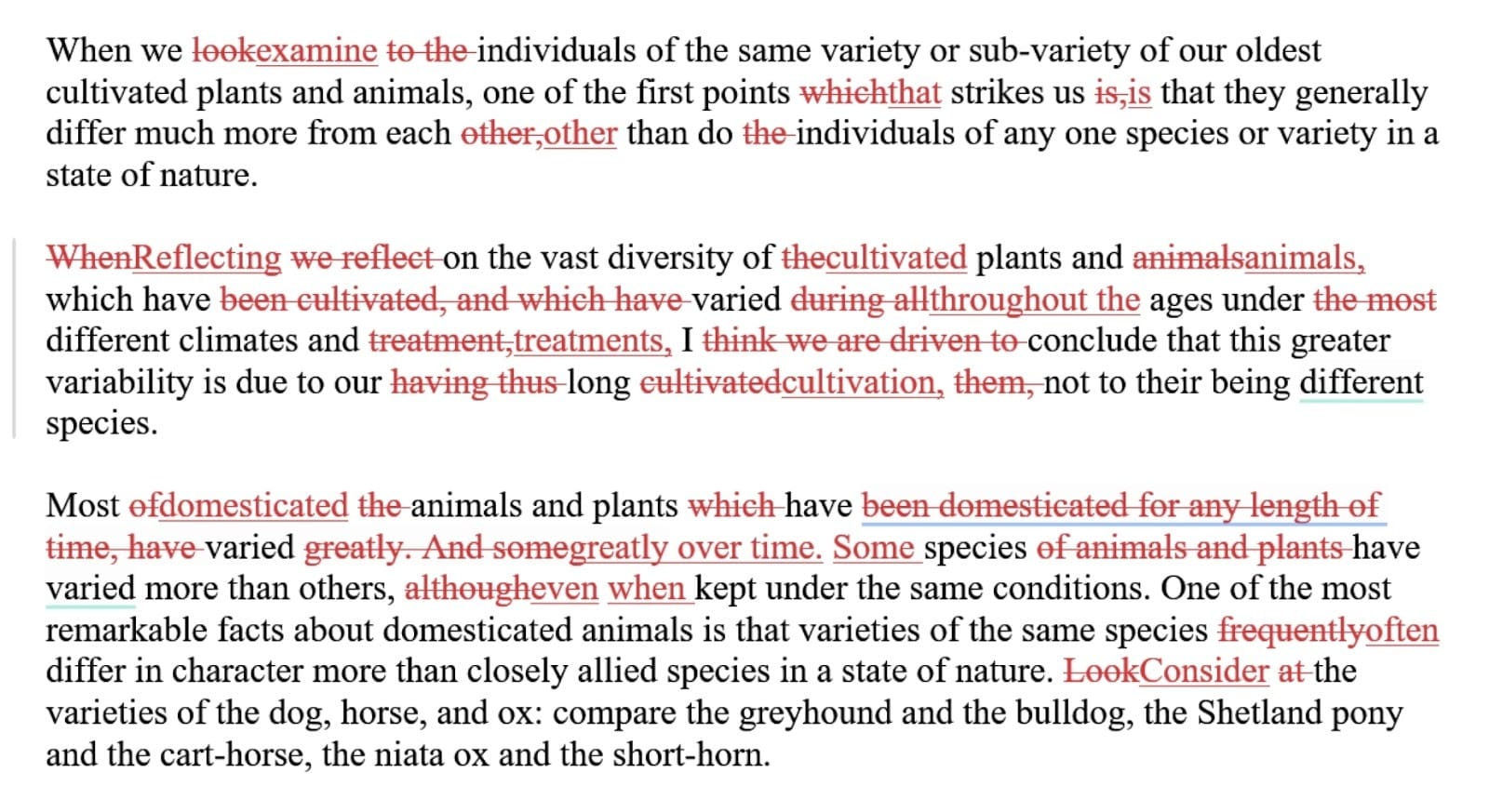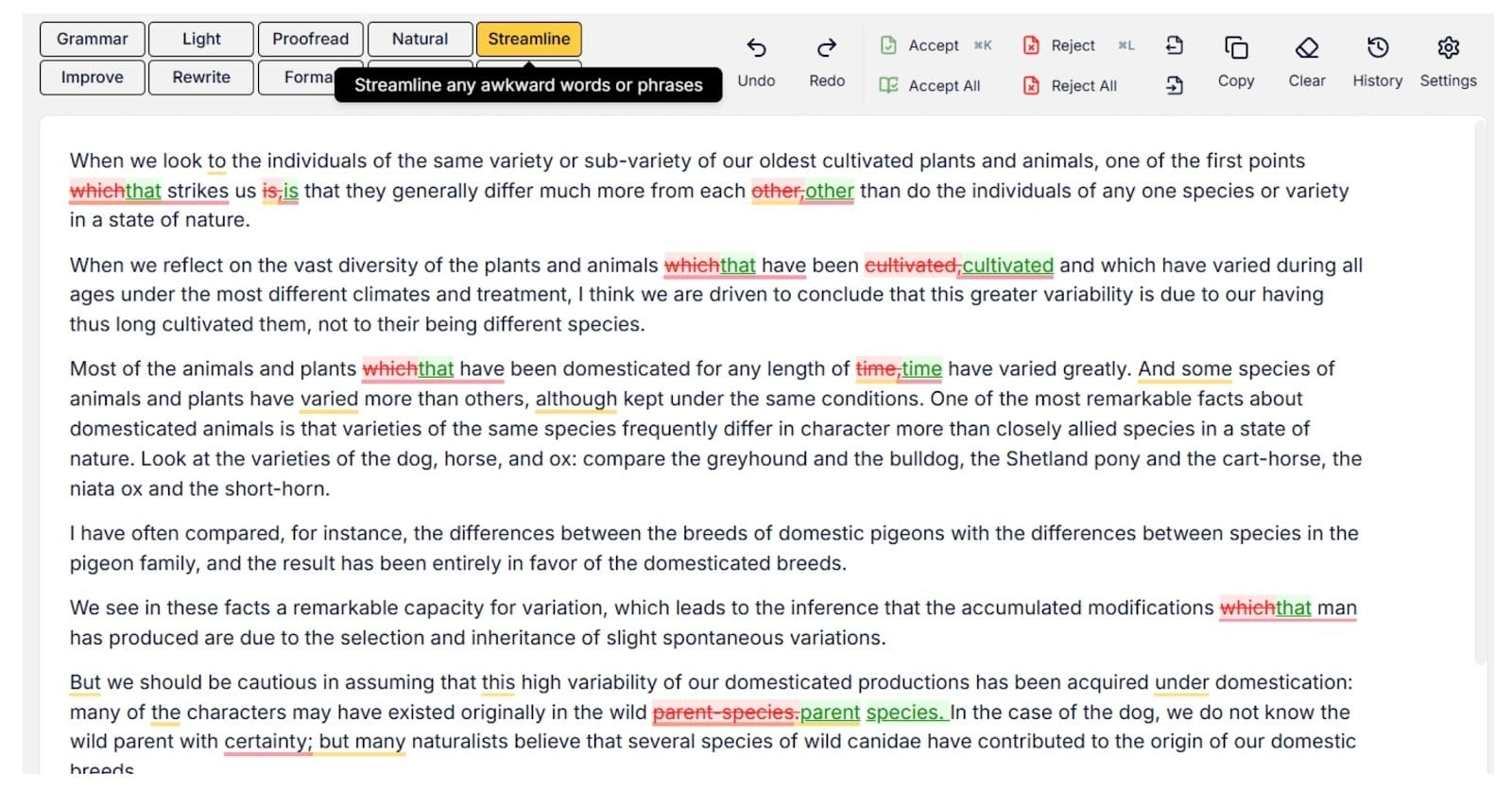 I also loved the "track changes" view. Seeing every tiny adjustment in red and green felt exactly like a human editor marking up a Word doc. And this track changes carries on even if you download it to Microsoft Word.