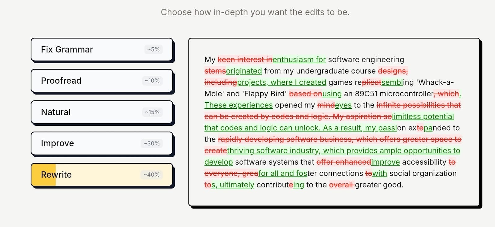 It goes far beyond basic grammar and spelling by offering modes like "Streamline" and "Natural" to overhaul your prose.